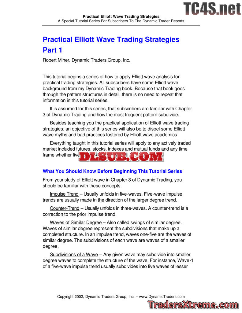 Miner Robert And Dynamic Traders Group Inc Practical Elliott Wave Trading Strategies - JPG Image File